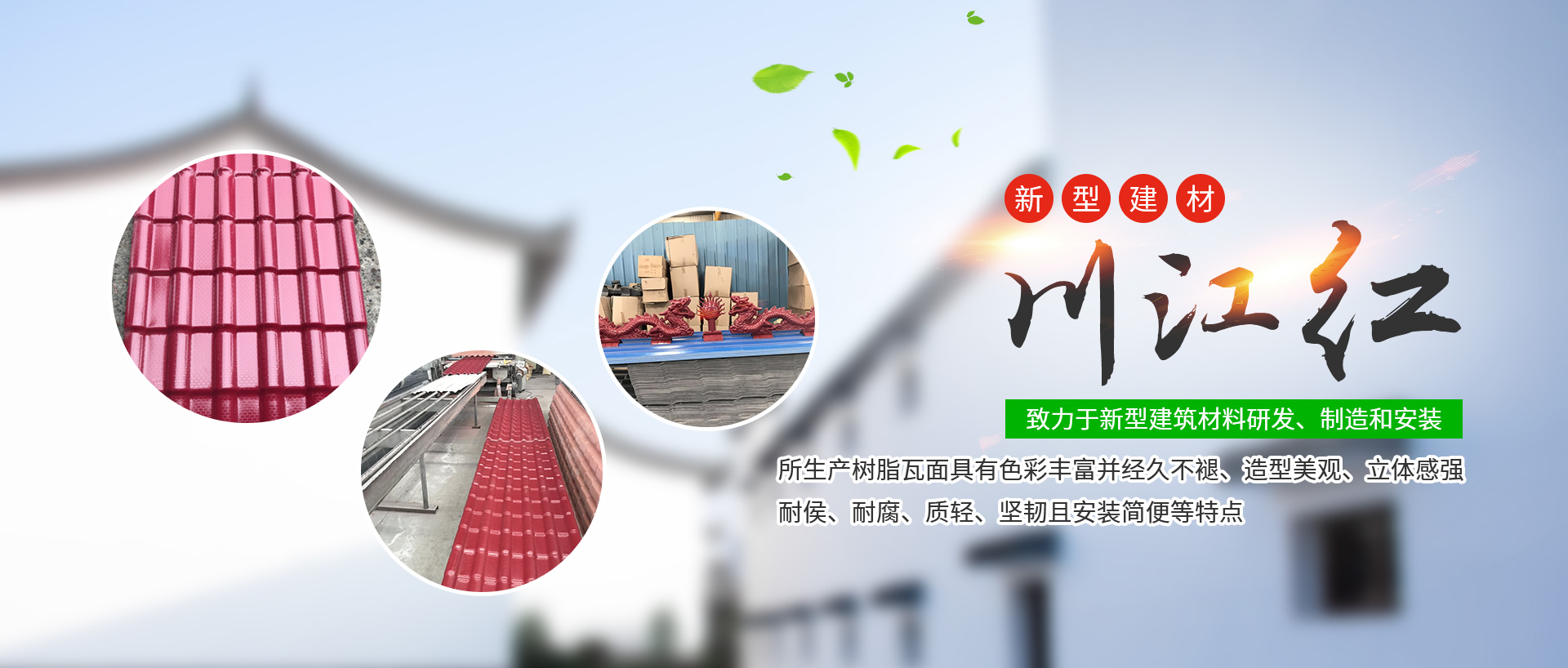 成都川江紅新型建材有限公司是2011-03-16成立,是西南領先合成樹脂瓦制造商,主要從事四川合成樹脂瓦、成都合成樹脂瓦的研發(fā)銷售。位于成都市西南航空工業港,是一家以科技為先導,致力于新型建筑材料研發(fā)、制造...